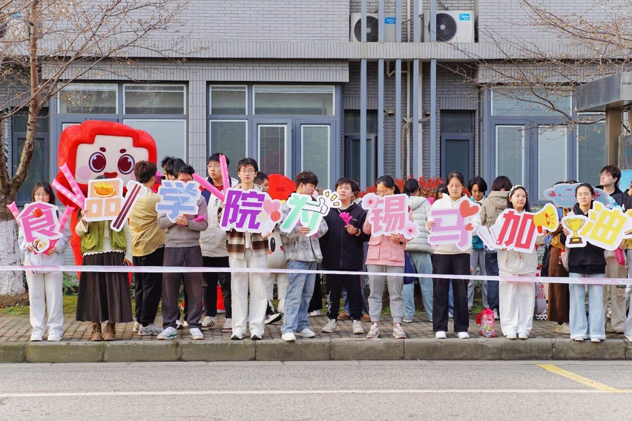 “‘食’力护航,锡马飞扬!江南食品,领跑未来!”嘹亮的口号响彻校园上空。食品学子手持加油气球棒与拍手板,以最饱满的热情为每一位参赛选手呐喊助威。人群中,抖阴